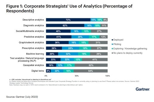 Lue Gartner Inc.:n tutkimus siitä, kuinka moni yritysstrategi hyödyntää analytiikkaa toiminnan tehostamiseksi:
